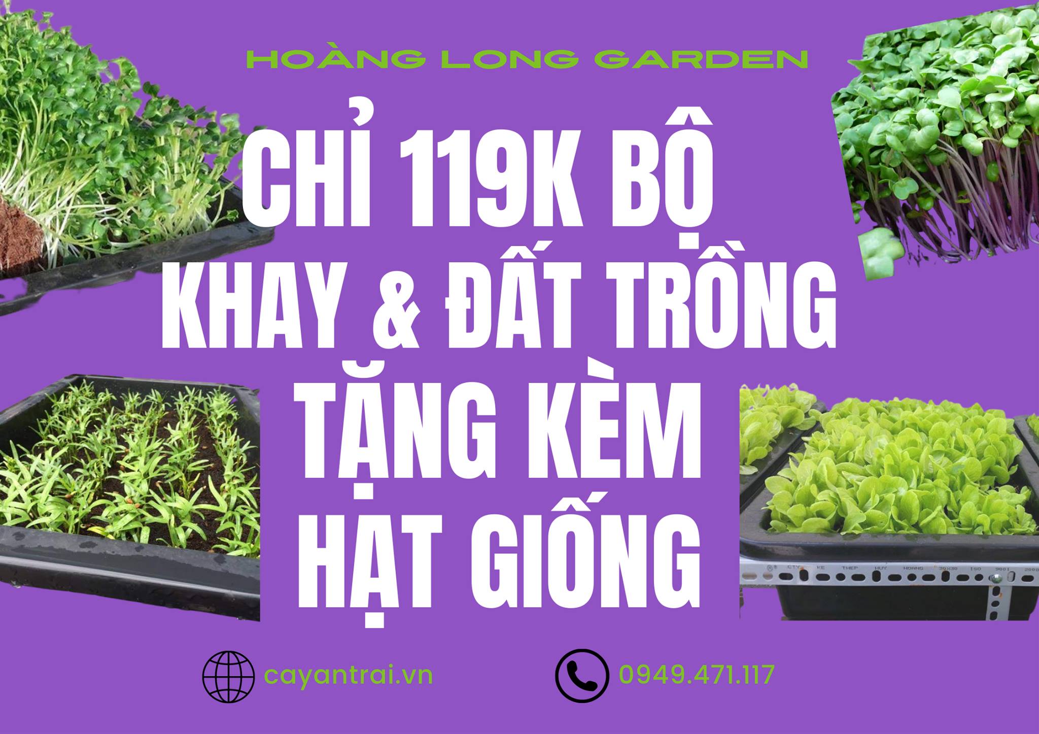 CHỈ 119K!Khay Trồng Rau + Đất Chuyên Dụng + Tặng MỘT trong Ba loại hạt...