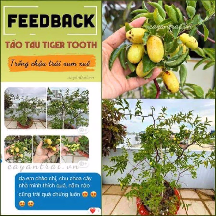 Các phản hồi của khách hàng của Hoàng Long Garden sau khi trồng giống Táo Tàu Tiger Tooth. Khi mua hàng tại Shop, ngoài được đảm bảo về chất lượng giống còn được đồng hành hướng dẫn chăm sóc trong suốt quá trình trồng. Nên rất nhiều khách hàng trồng được kết quả như ý muốn.