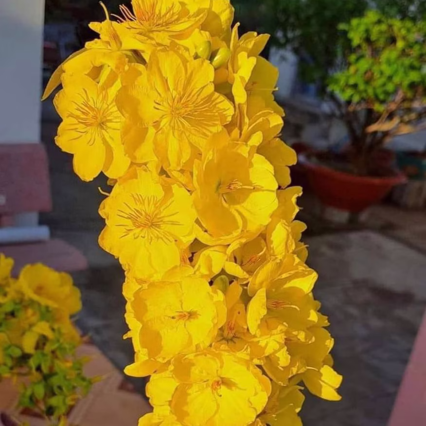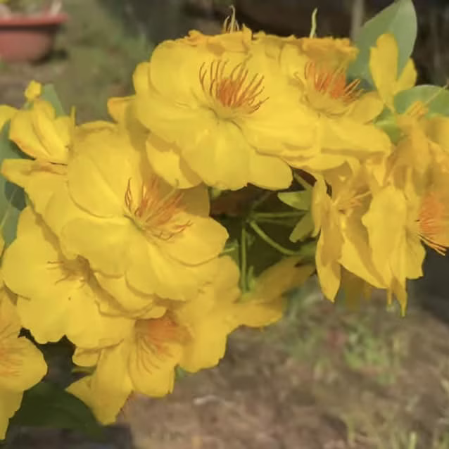 - Hoa: có màu vàng tươi, khi nở có từ 8 – 18 cánh xếp chồng và sát nhau không có khoảng trống, cánh hoa có đầu tròn và đuôi nhọn. Nhụy hoa màu vàng có thể kết hạt được. Thường đồng loạt rộ hoa sau mỗi đợt rụng lá nhất là vào các tháng 12 đến tháng 3 năm sau.