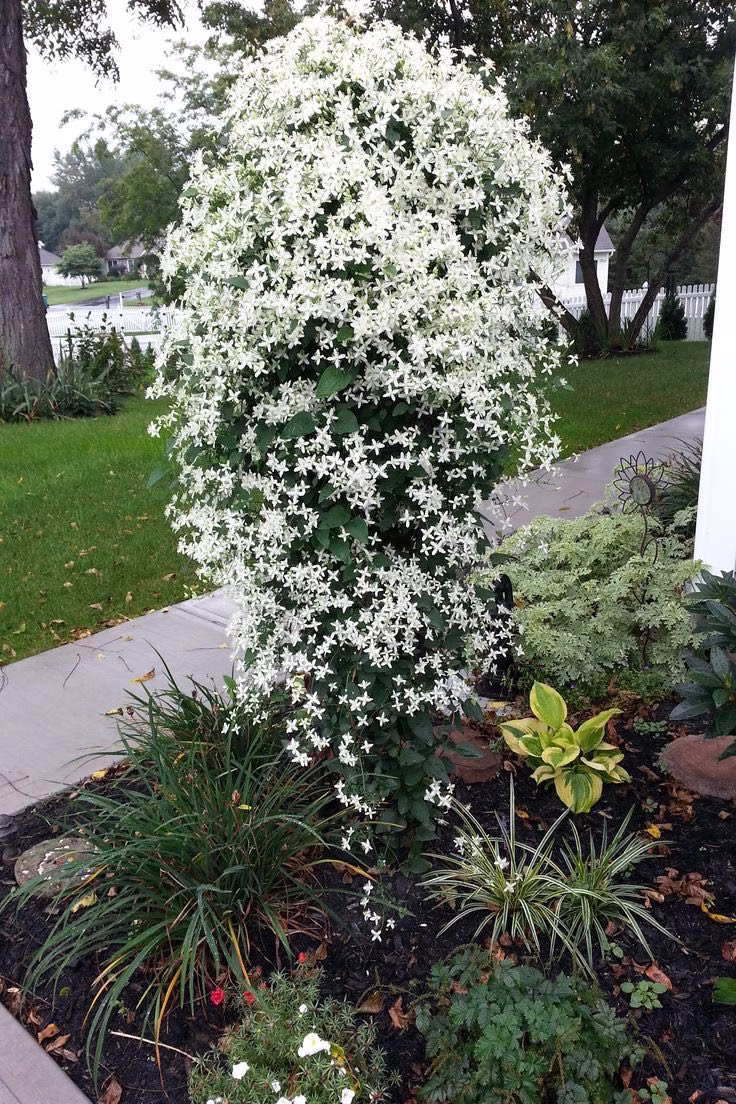 + Là giống hoa thân mềm, leo giàn được. Khi nở nộ tạo thành một vùng hoa trắng như tuyết.