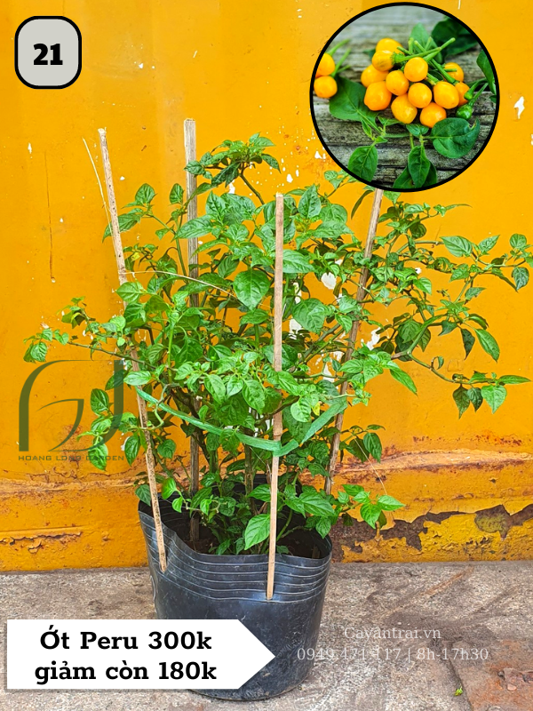21. Ớt Peru 300k đang giảm còn 180k (giá áp dụng chỉ có 3 cây, đang hoa)