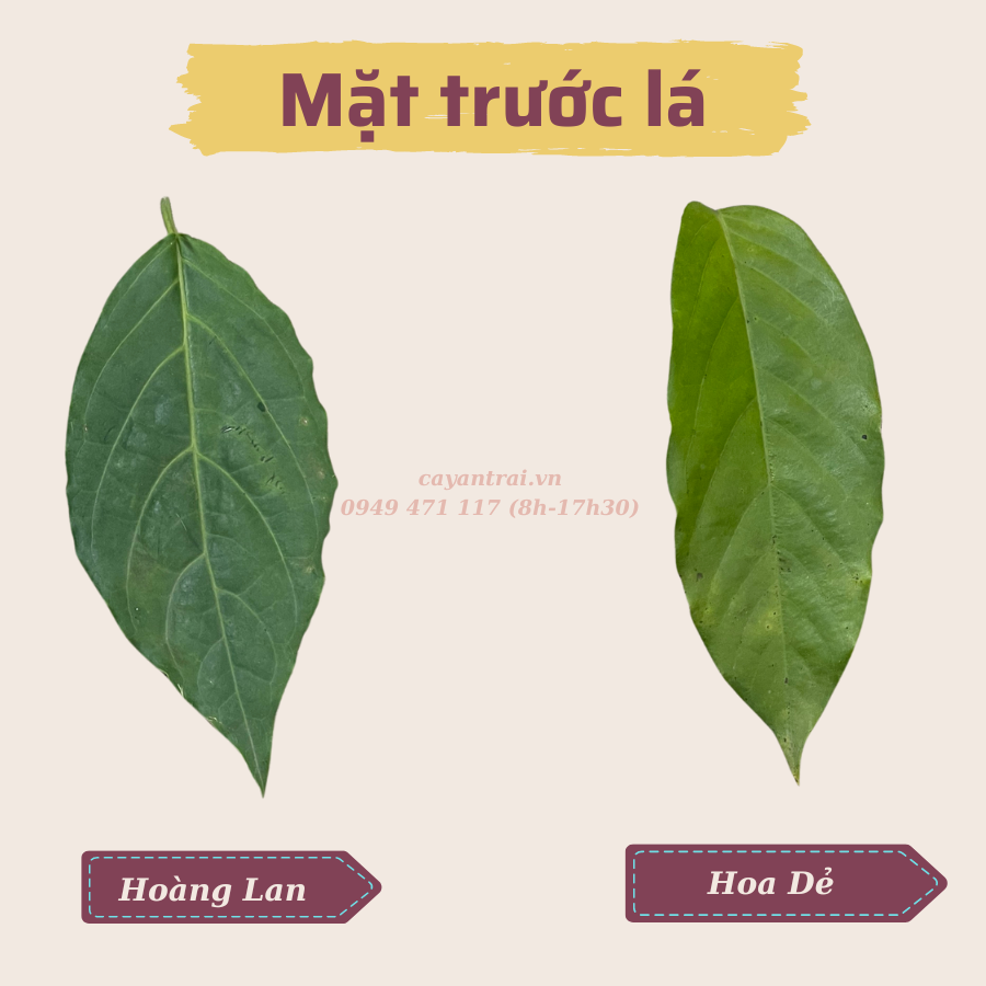 + Lá Hoàng Lan bảng lá to hơn, từ 5 – 8cm, hơi thuôn 2 đầu, phiến lá mỏng, bề mặt lá trơn bóng.